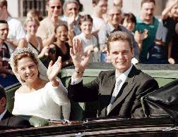 La salida fue el comienzo de la apoteosis popular. Los invitados a la basílica estallaron en aplausos, les gritaban «¡enhorabuena!» y ellos respondían con un «gracias». En el umbral del templo tuvieron que acceder a lo que les pedía el público. Y como les pedían que se besaran, se besaron. Desde el mar seguía llegando el sonido de las sirenas.