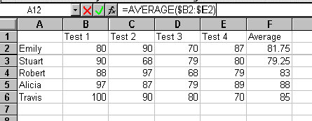 You can also copy a formula to a range of cells by using the Edit, Fill, Right (CTRL-R key combination) or Edit, Fill, Down (CTRL-D key combination) commands.