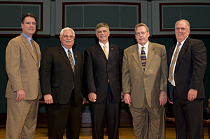 The ceremony also included remarks by students Teagan Gregory, a political science and international relations major with minors in East Asian studies, philosophy and religious studies, who received the 2009 Alexander J. Taylor Sr. Award for the outstanding senior man, and Casey Patriarco, an English education major with minors in history and philosophy, who received the 2009 Emalea Pusey Warner Award for the outstanding senior woman. Like the Wall of Fame honors, the Warner and Taylor awards are given annually by the UD Alumni Association.