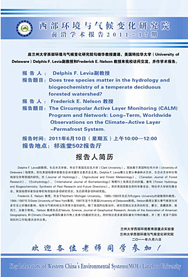 Profs. Del Levia and Frederick (Fritz) Nelson in the University of Delaware Department of Geography presented a series of lectures at Lanzhou University (LU) and the State Key Laboratory of Cryospheric Sciences of the Chinese Academy of Sciences (CAS). The National Key Basic Research Program of China and CAS supported the trip.