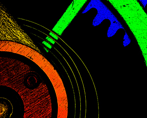 As part of a confocal course special project, Helton, as laboratory instructor, quided a student learning to use a Zeiss LSM 510 confocal microscope to take the digital image of the watch. Helton then enhanced the image prior to submission with special “stacking” software that enabled her to shade different levels of depth within the timepiece.
