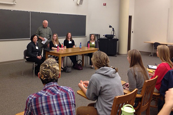 After a welcome from Steve Hastings, professor in the department, the four professionals engaged in a panel discussion, answering questions from Hastings, who served as the panel moderator, and from the students in attendance. The panel was followed by a mingling session during which the students got to meet the professionals in a one-on-one setting.