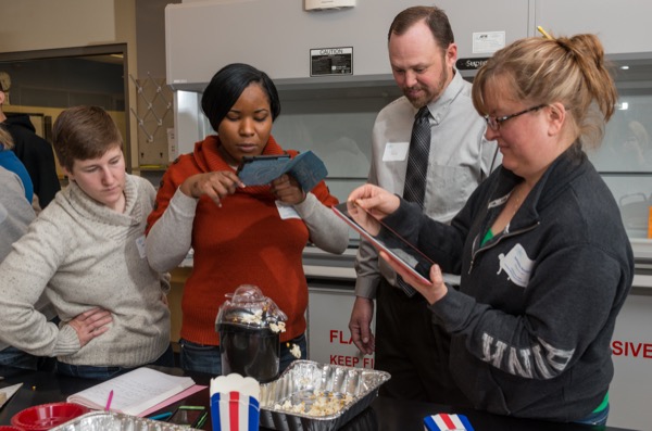 Actually, making the popcorn was only the first step in a series of laboratory experiences designed for the teachers to try out and then take back to their own classrooms to illustrate various concepts in science, technology, engineering and mathematics (STEM).