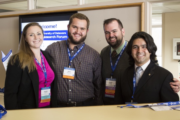 1:10 p.m., May 8, 2015--Highlights from years of inquiry, testing, discovery, thinking and rethinking were on the easels and projected on screens in meeting rooms throughout Clayton Hall during the fifth annual University of Delaware Graduate Research Forum in April.